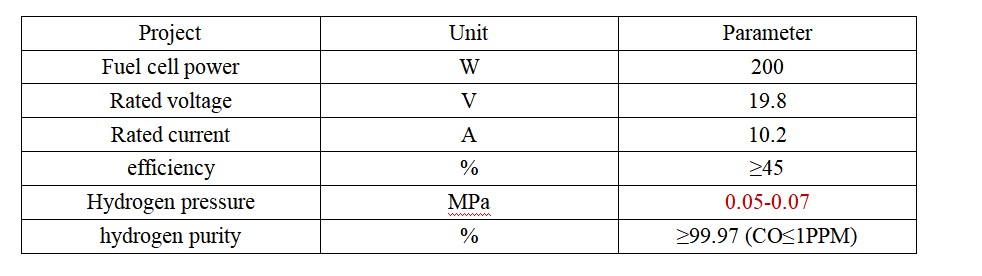 The core parameters of the fuel cell used in this teaching device are as follows: